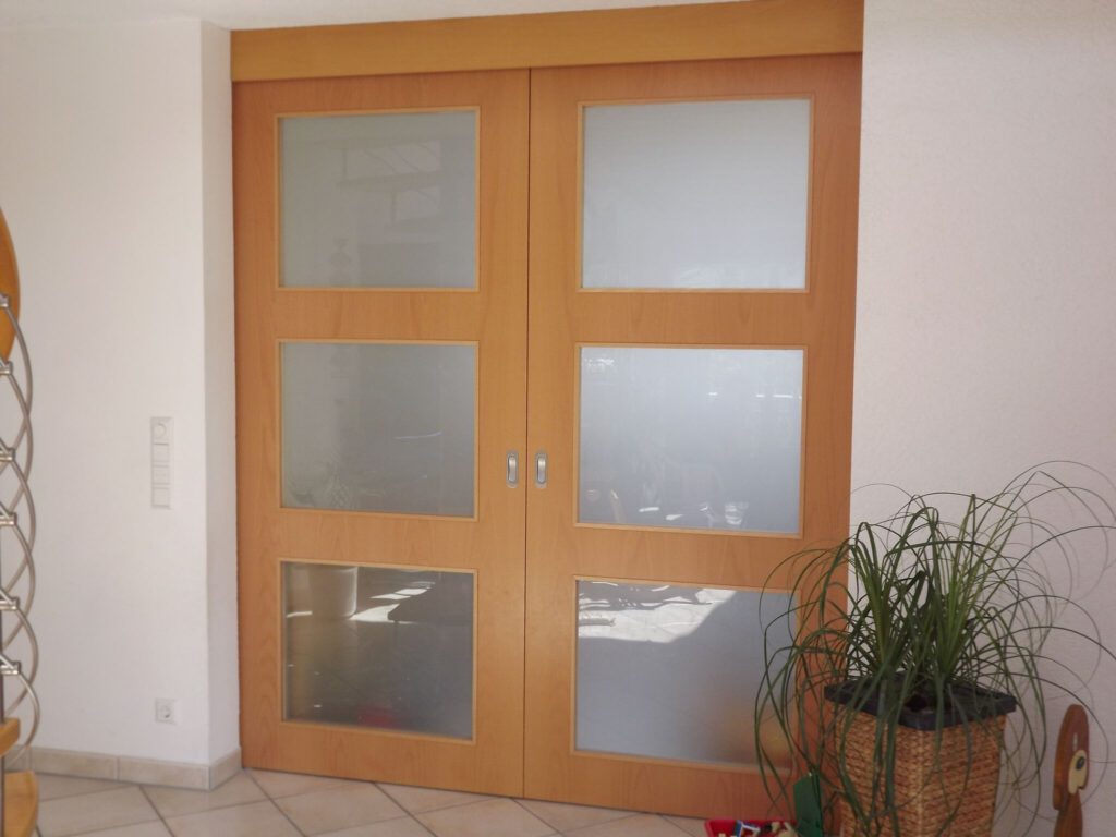 DETAILS Verschieden umgesetzte Windfangelemente bei unseren Kunden. Ob Einzeltüre oder Schiebetüre. Blockrahmen mit Oberlicht und/oder Seitenteile(n). Das verwendete Holz ist massiv (Beispiel Buche oder Whitewood), dieses kann nach belieben lackiert werden. Das Glas ist frei wählbar, ob Float hell, Satinato oder andere Muster – kommen Sie gerne mit Ihren Wünschen auf uns zu.